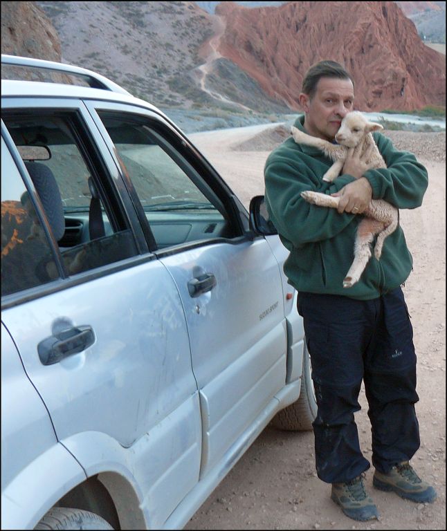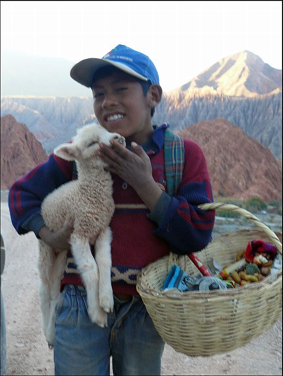 Si bien la foto salió movida, se puede ver que el niño de la izquierda lleva un corderito que intentó vendernos.