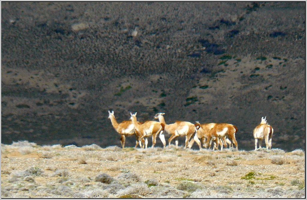 A lo lejos y zoom mediante se distingue la manada de guanacos ...