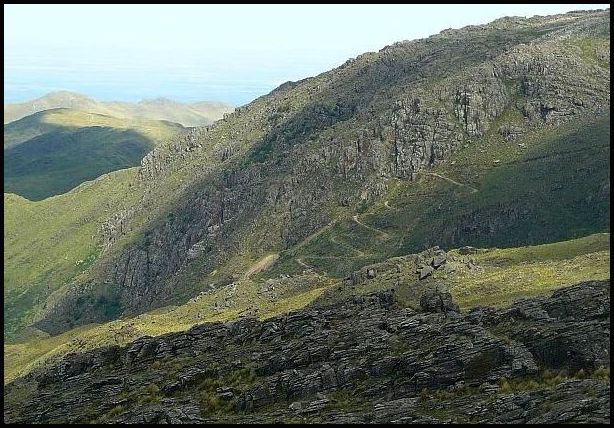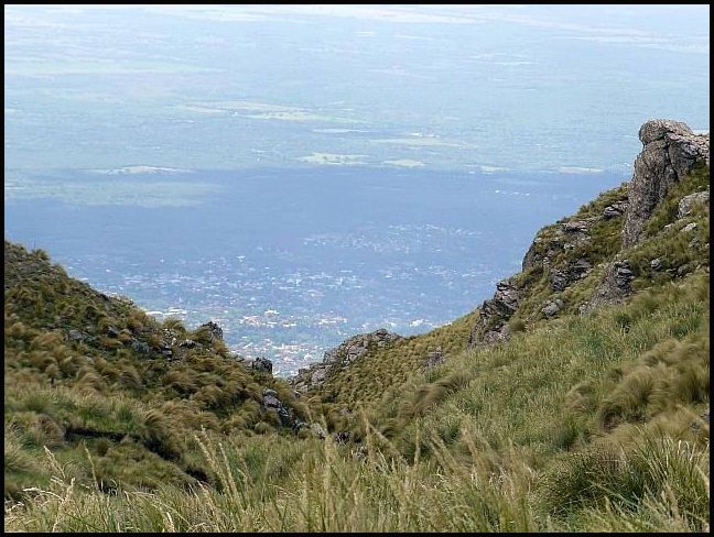 Llegamos al filo y al frente se ve el verde de la llanura
